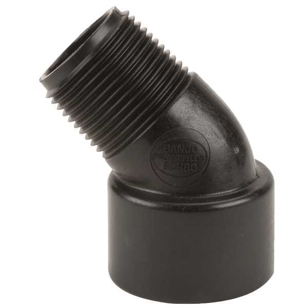45 Degrees Street Elbow, Polypropylene, Schedule 80, For Pipe Schedule Schedule 80, 1 in, Female, NPT, 1 3/8 in, 11 1/2, 1 in, Male, NPT, 1 13/16 in, 3 in Overall Length, 300 psi Maximum Operating Pressure, -20 Degrees to 150 Degrees F