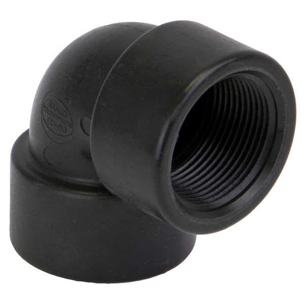 90 Degrees Elbow, Polypropylene, Schedule 80, For Pipe Schedule Schedule 80, 1 1/4 in, Female, NPT, 2 3/16 in, 11 1/2, 1 1/4 in, Female, NPT, 2 3/16 in, 11 1/2, 3 5/32 in Overall Length, 300 psi Maximum Operating Pressure, -20 Degrees to 150 Degrees F