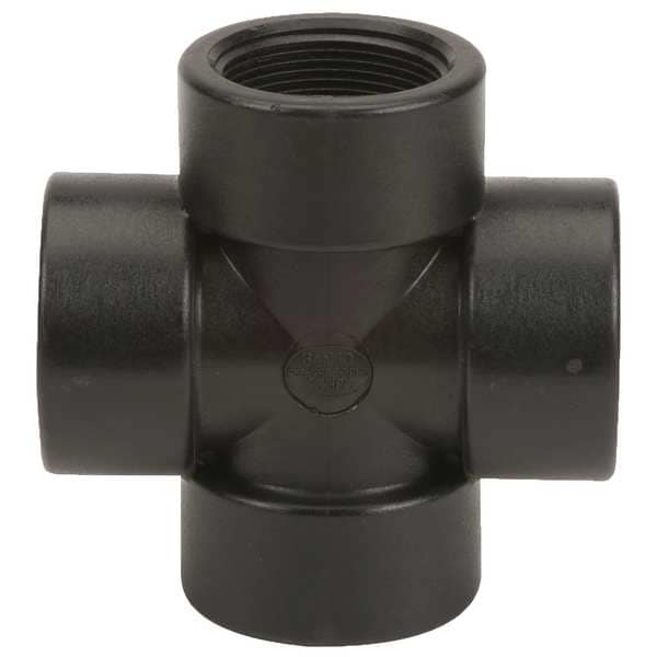 Cross, Thread Size 1 1/2 In, FPT Connection, Material of Construction Polypropylene, Max Pressure 150 PSI, Temp Range -20 To 150 Deg F, Color Black