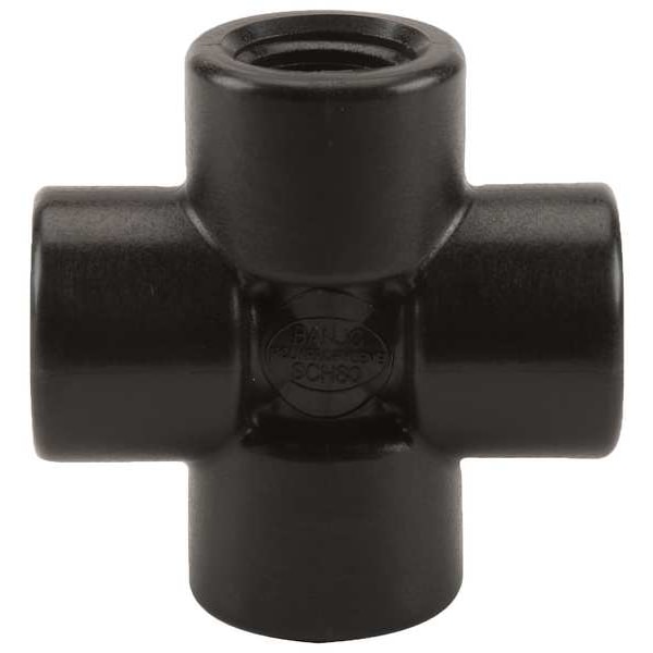 Cross, Thread Size 1/2 In, FPT Connection, Material of Construction Polypropylene, Max Pressure 150 PSI, Temp Range -20 To 150 Deg F, Color Black