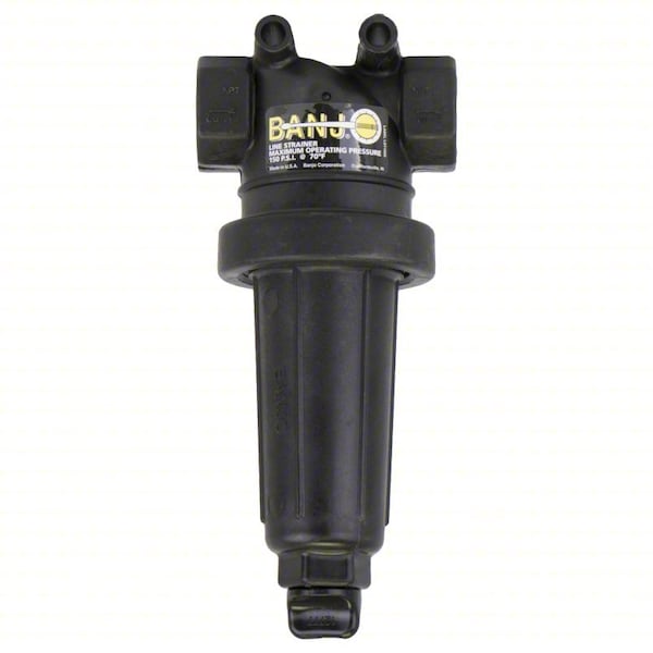 Inline Strainer, Material Polypropylene, Connection Type FNPT, Bowl Color Black, Pipe Size 3/4 in, Length 3 7/8 in, Height 9 in, Screen Material 316 Stainless Steel, Color Brown, Red, Connection Size 1/2 in, Diameter 3 7/8 in, Includes Screen Screen Included, Maximum Pressure 300 psi, Mesh Size 16 mesh, Micron Rating 1,190 micron