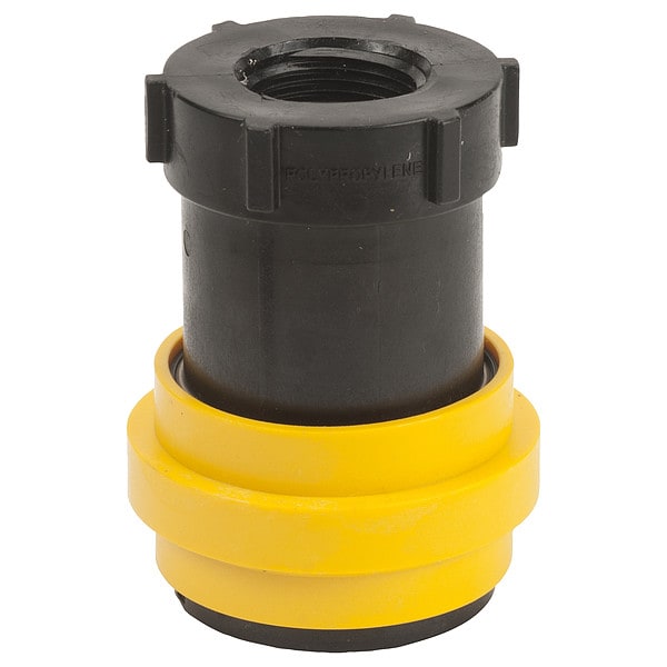 Dry Disconnect Coupling, Socket, Body Material Polypropylene, Dry Poppet Coupling, Female, Connection Type NPT, FNPT, Max. Working Pressure @ 70 F 100 psi, Gasket Material FKM, Overall Length 4 in, Thread Size 1 In.