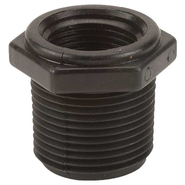 Reducing Bushing, Polypropylene, Schedule 80, For Pipe Schedule Schedule 80, 1 in, Male, NPT, 11 1/2, 3/4 in, Female, NPT, 1 3/8 in, 14, 1 1/2 in Overall Length, 300 psi Maximum Operating Pressure, -20 Degrees to 150 Degrees F