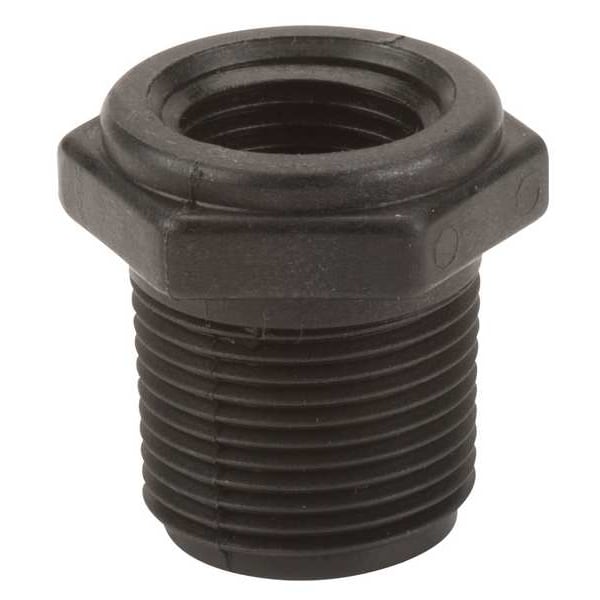 Reducing Bushing, Polypropylene, Schedule 80, For Pipe Schedule Schedule 80, 3/4 in, Male, NPT, 14, 1/2 in, Female, NPT, 1 3/16 in, 14, 1 13/32 in Overall Length, 300 psi Maximum Operating Pressure, -20 Degrees to 150 Degrees F