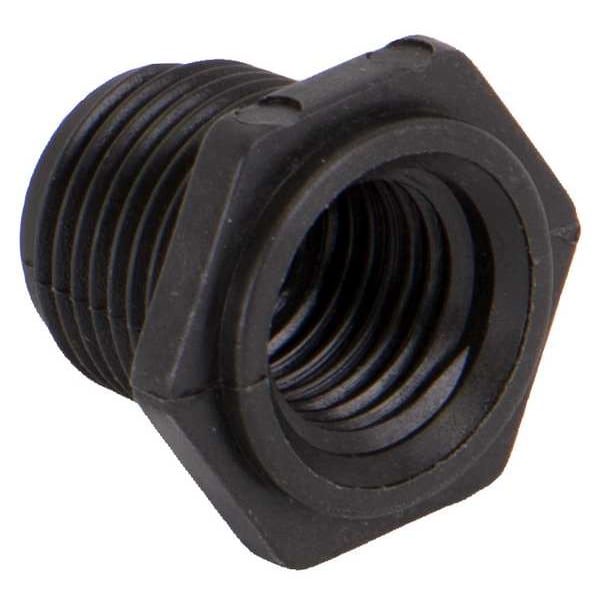 Reducing Bushing, Polypropylene, Schedule 80, For Pipe Schedule Schedule 80, 3/8 in, Male, NPT, 18, 1/4 in, Female, NPT, 3/4 in, 18, 3/4 in Overall Length, 300 psi Maximum Operating Pressure, -20 Degrees to 150 Degrees F