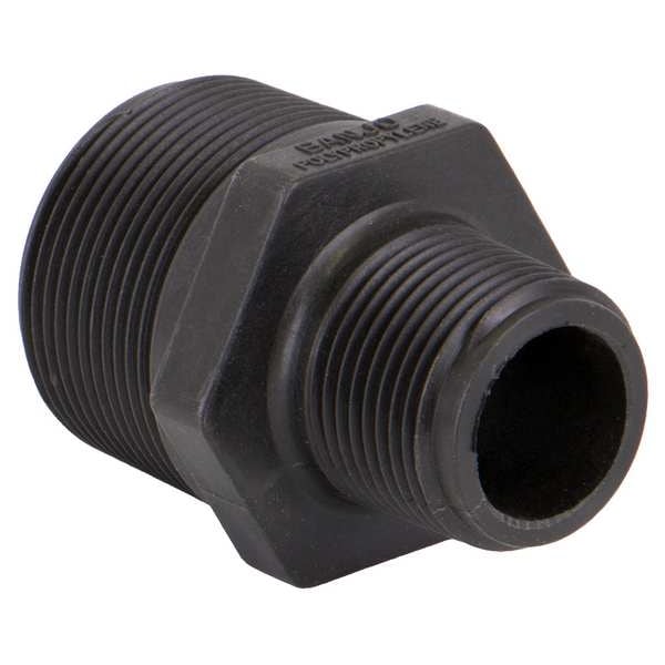 Reducing Nipple, Polypropylene, Schedule 80, For Pipe Schedule Schedule 80, 1 1/2 in, Male, NPT, 1 5/16 in, 11 1/2, 1 in, Male, NPT, 1 7/8 in, 11 1/2, 2 23/32 in Overall Length, 300 psi Maximum Operating Pressure, -20 Degrees to 150 Degrees F