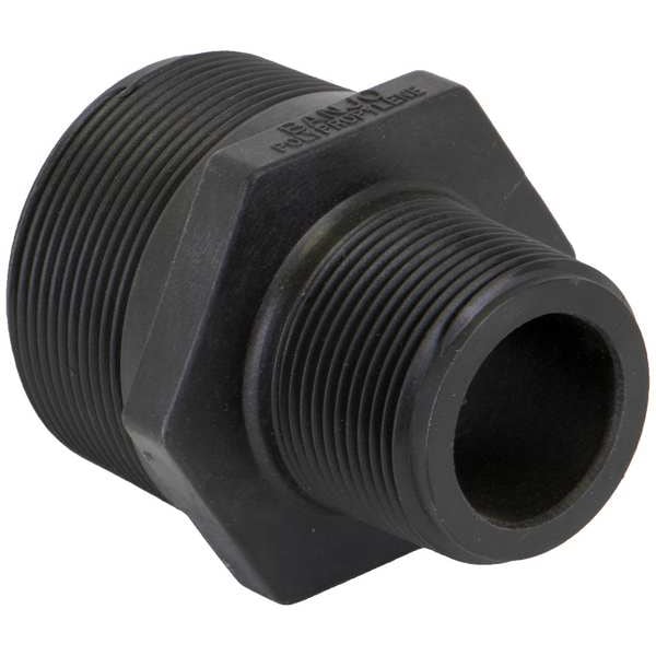 Reducing Nipple, Polypropylene, Schedule 80, For Pipe Schedule Schedule 80, 2 in, Male, NPT, 1 5/8 in, 11 1/2, 1 1/4 in, Male, NPT, 2 3/8 in, 11 1/2, 2 15/16 in Overall Length, 300 psi Maximum Operating Pressure, -20 Degrees to 150 Degrees F
