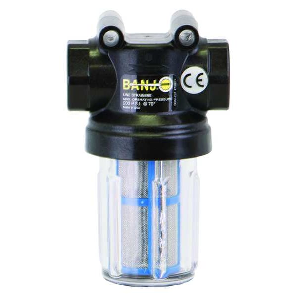 Inline Strainer, Material Polypropylene, Connection Type NPT, Bowl Color Clear, Pipe Size 1/2 in, Maximum Pressure at 100 deg F 100 psi, Length 3 in, Height 4 1/4 in, Screen Material 316 Stainless Steel, Gasket Material EPDM, Color Blue, Connection Gender Female, Connection Size 1/2 in, Diameter 3 1/16 in, Includes Screen Screen Included, Incoming Tube Size 1/2 in, Material Grade 316, Maximum Pressure 100 psi, Maximum Temperature 70 Degrees F, Mesh Size 0.0117 in, Micron Rating 297 micron