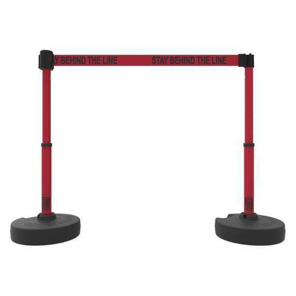 Barrier Post with Belt, Includes (2) Bases, (2) Stanchions, 15 ft Retractable Belt, Receiver Head, Belt Color Red, Belt Length 15 ft, Legend Stay Behind the Line
