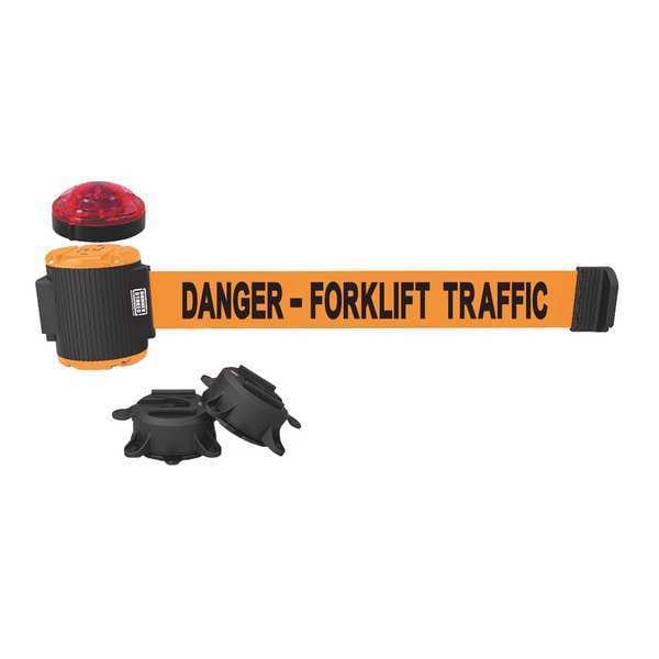 Belt Barrier w/Light Kit, Mounting Style Magnet, Suction Cup, Belt Length 30 ft, Belt Color Orange, Legend Danger - Forklift Traffic, Frame Color Black/Orange, Overall Height 7 in, Frame Finish Matte, Indoor/Outdoor Usage Indoor, Outdoor, Includes (2) Suction Cups, Light Kit with Red Strobe Light, Includes Mounting Hardware Included