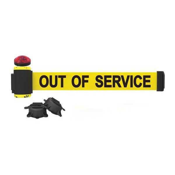 Belt Barrier w/Light Kit, Mounting Style Magnet, Suction Cup, Belt Length 7 ft, Belt Color Yellow, Legend Out of Service, Frame Color Yellow, Overall Height 6 3/4 in, Frame Finish Matte, Indoor/Outdoor Usage Indoor, Outdoor, Includes (2) Suction Cups, Light Kit with Red Strobe Light, Includes Mounting Hardware Included