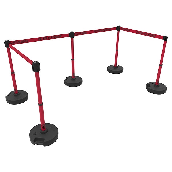 Belt Barrier System, Includes (5) Bases, Receiver Head, Maximum Overall Height 42 in, Minimum Overall Height 22 in, Belt Length 15 ft, Belt Color Yellow, Belt Pattern No Pattern, Legend Authorized Personnel Only, Number of Posts 5, Post Color Yellow, Base Type Round Flat, Reflectivity Non-Reflective, Number of Belts 4, Post Height 22 in to 42 in Adjustable, Post Material Plastic, Base Material Plastic