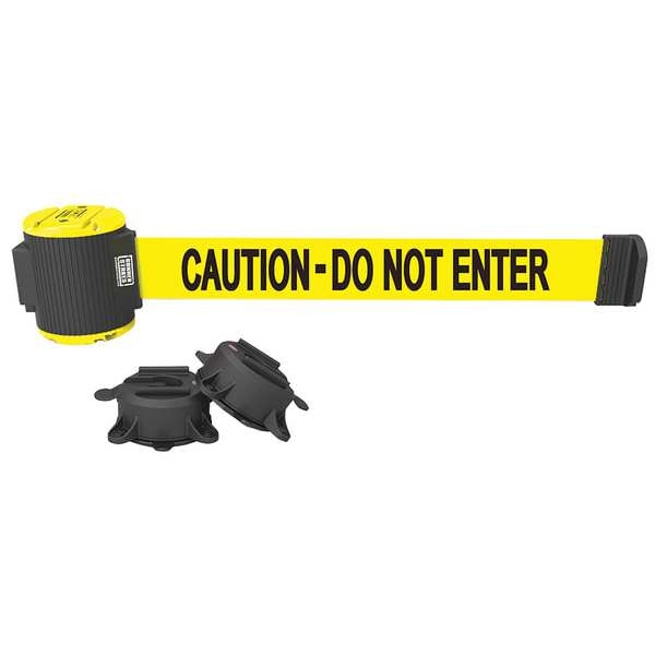 Magnetic Retractable Belt Barrier, Wall Mount, Yellow, Belt Message: Caution - Do Not Enter