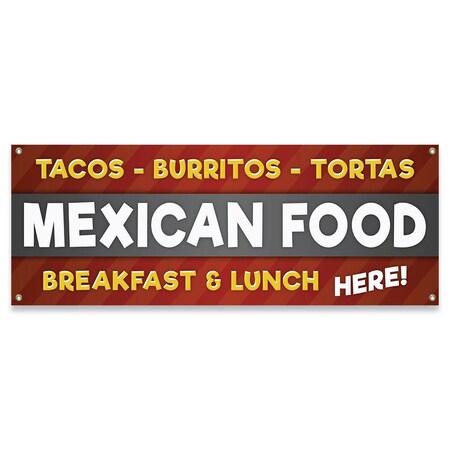 Tacos Burritos Tortas Mexican Food Breakfast & Lunch Banner Concession Stand Food Truck Single Sided