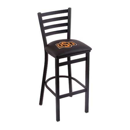 30" Blk Wrinkle Oklahoma State Stationary Bar Stool, Ladder Back