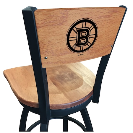 25" Blk Wrinkle Boston Bruins Swivel Bar Stool, Laser Engraved Back