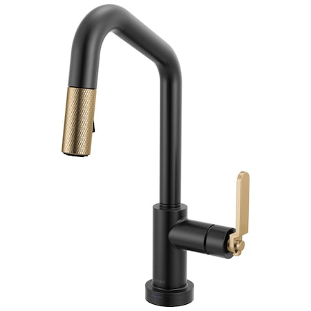 Litze Smarttouch Pull-Down Prep Faucet with Angle Spout, Industrial Handle Matte Black/Luxe Gold
