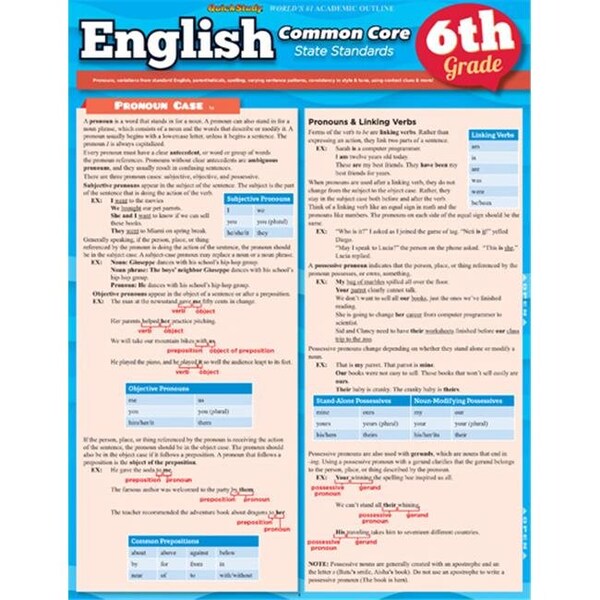 BarCharts 9781423217619 English Common Core 6Th Grade Quickstudy Easel