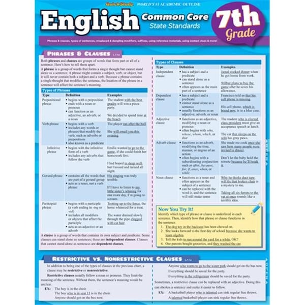 BarCharts 9781423217626 English Common Core 7Th Grade Quickstudy Easel