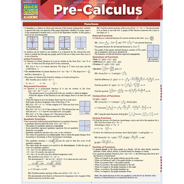 Pre-Calculus Quickstudy Easel