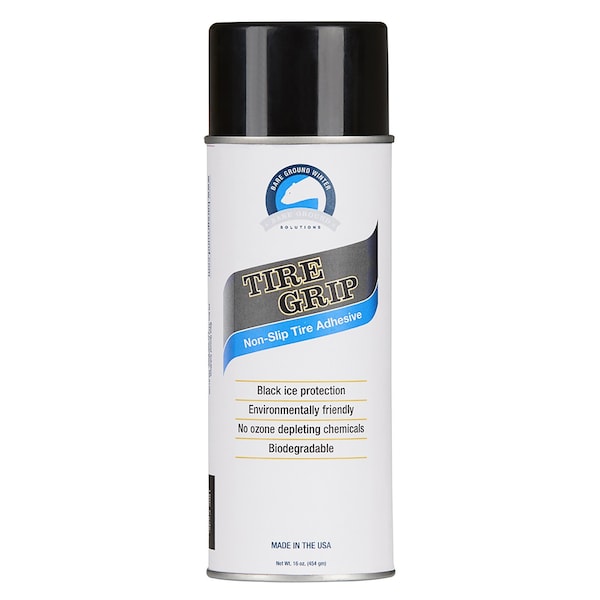 Bare Ground Spray-on Tire Grip. This provides added traction to your tires in slippery conditions. Bare Ground Spray-on Tire Grip is one of the few traction devices that give your car extra traction, yet poses no danger to highway and local road infrastructures or your car. Tire Grip is a thin resin film sprayed onto your tires, which makes it harmless to road surfaces, unlike tire studs or chains. More importantly, it does not run the risk of damaging your own drive train normally associated with chains or other traction devices.