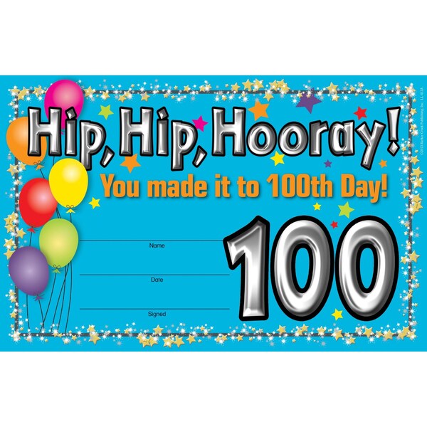 Celebrate the 100th day of the school year with Barker Creek's 100 Days of School Awards Package comes with 30 recognition awards Each colorful award measures 85 x 55 and is printed on 10pt glossy card stock Each certificate can be personalized with your students' names, the date, and your signature Additional awards available Search Barker Creek Awards