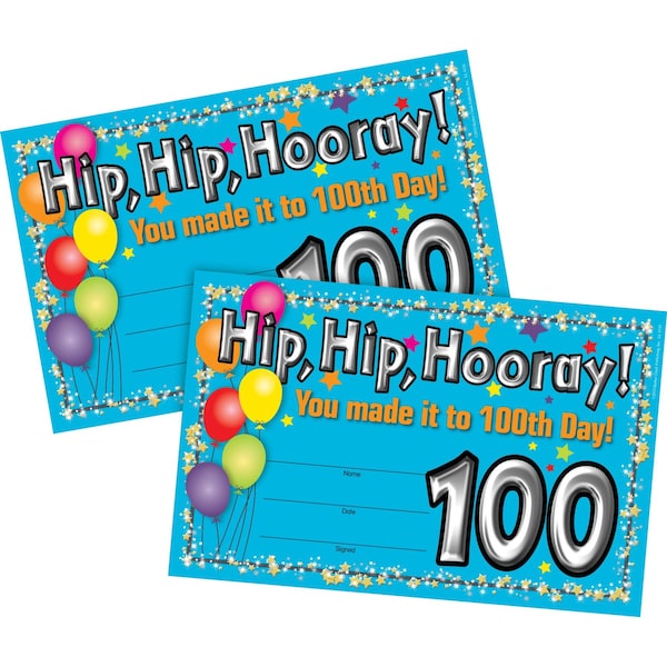 Celebrate the 100th day of the school year with Barker Creek's 100 Days of School Awards Each set comes with 60 recognition awards Each colorful award measures 85 x 55 and is printed on 10pt glossy card stock Each certificate can be personalized with your students' names, the date, and your signature Additional awards available Search Barker Creek Awards