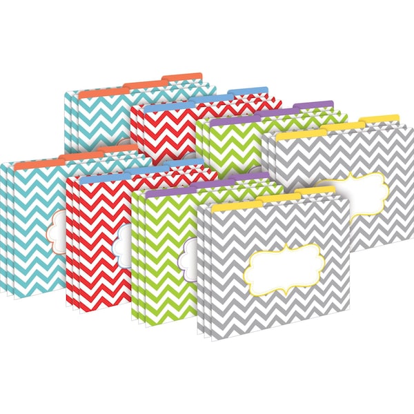 Barker Creek's Beautiful Chevron LetterSize File Folders are an affordable way to organize your office, classroom, or home with style and flair This set of stylish desk accessories includes 24 file folders six each of four colorful designs The folders are 13 tabbed, which means that they have three tab positions eight folders are tabbed on the left, eight folders are tabbed in the center, and eight are tabbed on the right They are great for everyday filing needs, presenting meeting handouts, organizing important papers, sending work home with students, storing treasured photos and archiving other significant mementos These Beautiful Chevron file folders come with a preprinted label on the front for adding a table of contents, highlighting meeting agendas, listing the names of team members, bulleting travel itineraries, and so much more These unique office supplies are fully reversible, each folder having a multicolored design on one side and a soft, solid color on the reverse side The possibilities are limited only by your imagination Coordinating products are available Search Barker Creek Chevron