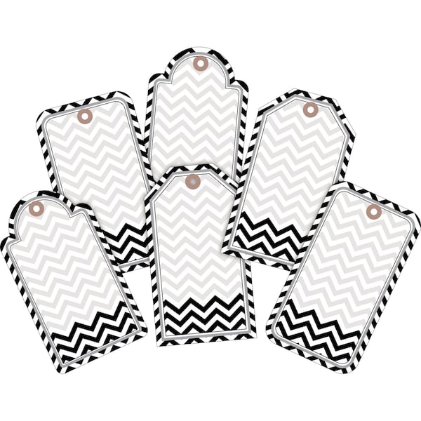 Barker Creek Black Tie Affair Chevron Accents will make your decorating dreams come true These accents are doublesided to give you twice the decorating punch in a single package Accents are a fun, inexpensive way to dress up your bulletin boards, decorate your children's rooms, and brighten up your work space There is room to write on our accents add student names, label learning centers, glue them to the front of file folders and label the contents, use them as gift tags They can also be used to make great little signs, name tags, storage tub labels, invitations, fun flash cards, and so much more Use them to decorate windows, posters, and packages and you can hang them to create fun mobiles This set includes 36 accents 6 each of 6 different designs Each Accent Measures Approx 32 wide by 55 high Coordinating products available Search Barker Creek Chevron