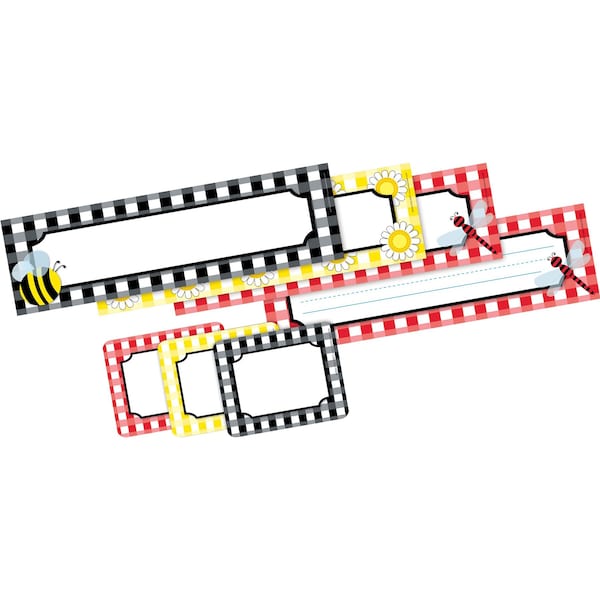 Barker Creek's Buffalo Plaid Wide Stripes Name Tag Name Plate Set is sure to add a pretty touch to every learning environment Each set includes colorful classic plaid designs There are 45 selfadhesive labels 15 each of 3 designs that measure 3 12 x 2 34 and 36 name plates 12 each of 3 designs that measure 12 long x 3 12 wide The brightly illustrated name tags are perfect for the first week of school, field trips, assemblies, special visitors, staff meetings and more They can also be used to personalize file folders, binders, and notebooks Use them as nameplates for your classroom library and to label learning center activities and supplies The doublesided name plates are incredibly versatile Use the side with rules when making name plates for student desks and lockers, creating word walls, making flashcards for spelling and vocabulary lists, and more Use the side without the rules for making beautiful bulletin board signs, labeling cubbies, and making hall passes Because they are doublesided, you can also hang them from the ceiling to identify learning centers, activity zones, library stacks The uses are limited only by your imagination Coordinating products available Search Barker Creek Buffalo Plaid Wide Stripes
