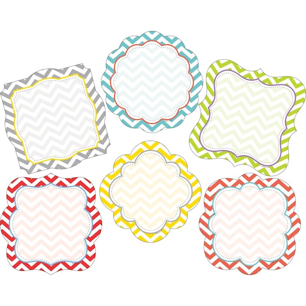 Barker Creek's Beautiful Chevron doublesided accents are sure to make a statement with their classic Chevron design These accents are doublesided to give you twice the decorating punch in a single package Accents are a fun, inexpensive way to dress up your bulletin boards, decorate your children's rooms, and brighten up your work space There is room to write on our accents add student names, label learning centers, glue them to the front of file folders and label the contents, use them as gift tags They can also be used to make great little signs, name tags, storage tub labels, invitations, fun flash cards, and so much more Use them to decorate windows, posters, and packages and you can hang them to create fun mobiles This set includes 72 accents 12 each of 6 different designs Each Accent Measures Approx 55 wide by 55 high Coordinating products available Search Barker Creek Chevron