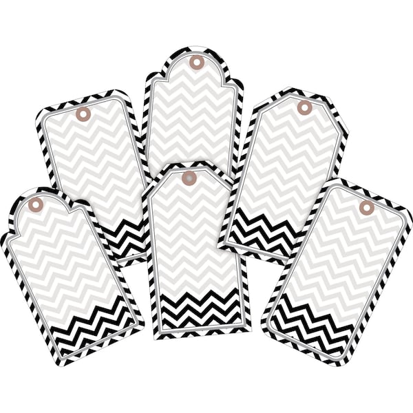 Barker Creek Black Tie Affair Chevron Accents will make your decorating dreams come true These accents are doublesided to give you twice the decorating punch in a single package Accents are a fun, inexpensive way to dress up your bulletin boards, decorate your children's rooms, and brighten up your work space There is room to write on our accents add student names, label learning centers, glue them to the front of file folders and label the contents, use them as gift tags They can also be used to make great little signs, name tags, storage tub labels, invitations, fun flash cards, and so much more Use them to decorate windows, posters, and packages and you can hang them to create fun mobiles This set includes 72 accents 12 each of 6 different designs Each Accent Measures Approx 32 wide by 55 high Coordinating products available Search Barker Creek Chevron