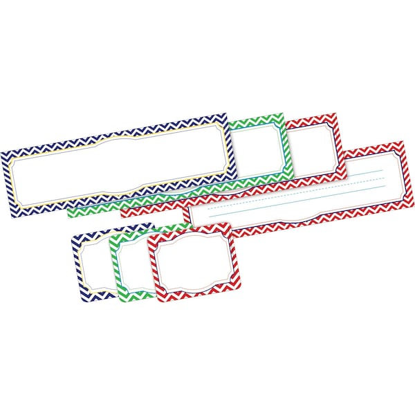 Barker Creek's Chevron Nautical Name Tag Name Plate Set is sure to add a pretty touch to every learning environment Each set includes 45 selfadhesive labels 15 each of 3 designs that measure 3 12 x 2 34 and 36 name plates 12 each of 3 designs that measure 12 long x 3 12 wide The brightly illustrated name tags are perfect for the first week of school, field trips, assemblies, special visitors, staff meetings and more They can also be used to personalize file folders, binders, and notebooks Use them as nameplates for your classroom library and to label learning center activities and supplies The doublesided name plates are incredibly versatile Use the side with rules when making name plates for student desks and lockers, creating word walls, making flashcards for spelling and vocabulary lists, and more Use the side without the rules for making beautiful bulletin board signs, labeling cubbies, and making hall passes Because they are doublesided, you can also hang them from the ceiling to identify learning centers, activity zones, library stacks The uses are limited only by your imagination Coordinating products available Search Barker Creek Chevron