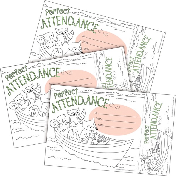 Barker Creek's Color Me Attendance Awards Bookmarks Set are unique and interactive awards that are easy to personalize, and include a detachable bookmark on the side This set includes 90 awards with coordinating bookmarks One side has a glossy finish and a splash of color already printed on it The flip side has a crayonfriendly matte finish and black and white line art Designed to be colored by the recipient, these awards and bookmarks are a wonderful and affordable way to celebrate your studentsand engage them in the process Coordinating products available Search Barker Creek Color Me