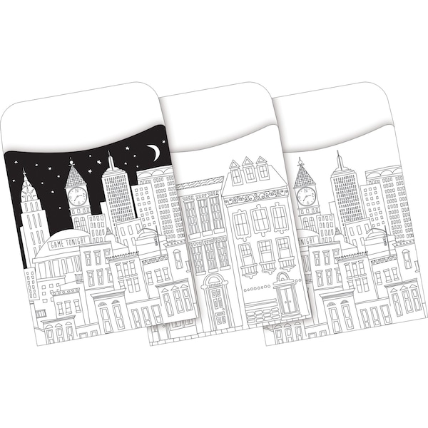 Barker Creek's Peel Stick Color Me Cityscapes Library Pockets are great for organizing flash cards, hall passes, file folder game pieces, spelling word lists, library cards, reading logs, and more This set includes 30 pockets ten each of three beautiful designs They also serve as 60 amazing coloring pages so grab your favorite pack of crayons or color pencils and get coloring Then you've got your own personalized set of library pockets Each pocket has two selfadhesive peel stick strips on the back making them easy to adhere to file folders, binders, charts, signs, hallways, and doorsthe possibilities are limited only by your imagination You'll find dozens of creative uses for Barker Creek's versatile library pockets Suitable for all ages and grades Peel Stick Library Pocket measures 51875 H x 35 W Library Pockets that you can color Coordinating products available Search Barker Creek Color Me