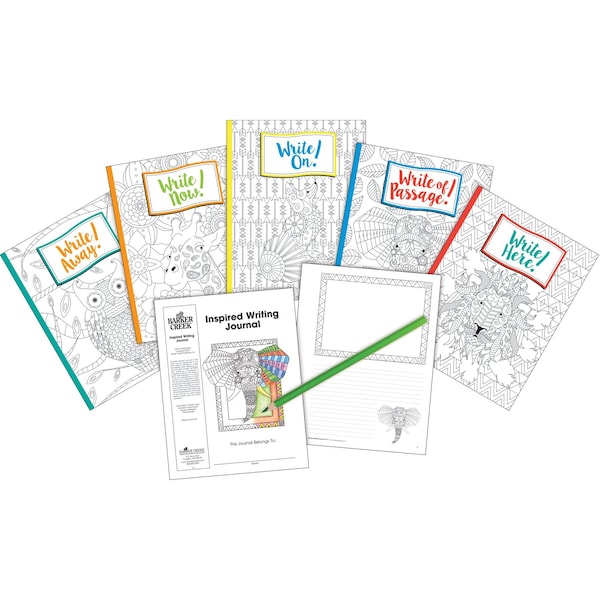 Barker Creek Inspired Writing Journals will help spark your students' creativity The 5 journals each have their own different cover design an owl, giraffe, fox, elephant, and a lion The covers are designed to be colored, encouraging students to personalize their journals from the inside out Each of the five journals includes 48 sheets of paper formatted with collegerule lines and areas for students' to add their own illustrations Coordinating products available Search Barker Creek Color Me and Barker Creek Bohemian Animals