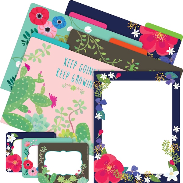 Barker Creek's Petals Get Organized Kit will help you stay on task in style The file folders are printed on sturdy 12 point cardstock, feature 13 cut tabs, and are reversible The selfadhesive labels measure 35 x 275 and come with 3 each of 15 designs The coordinating paper is compatible with most laser and inkjet printers Say goodbye to boring old office supplies and hello to fun and fashion Coordinating products available Search Barker Creek Petals Prickles