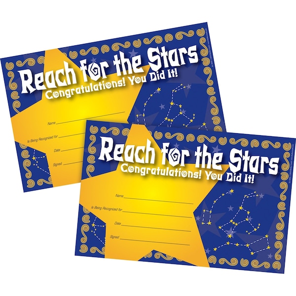 Recognize your students' achievement with Barker Creek's Reach for the Stars Recognition Awards Set contains 60 awards and each award can be customized with the name of the recipient, the date, and a brief description of why it the recognition is muchdeserved Unique illustrations make them cute enough to frame Each Award measures 85 x 55 Printed on durable, heavy card stock Additional awards available Search Barker Creek Awards