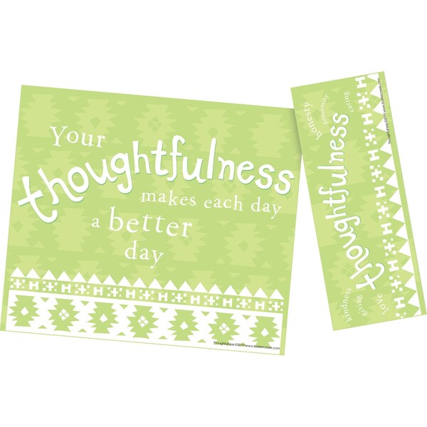 Recognize your students' achievement with Barker Creek's Thoughtfulness Awards and Bookmarks Set The designs feature a calm color palette and ontrend designs that were inspired by the thoughtfulness, mindfulness, and meditation trends The set includes 30 Thoughtfulness awards with coordinating bookmarks attached Each Award and Bookmark sheet measures 85 x 55 Awards measure 675 x 55 and Bookmarks measure 175 x 55 The award says, Your thoughtfulness makes each day a better day The bookmark has the words thoughtfulness, honesty, generosity, caring, kindness, giving, and love and is designed to be detached by the recipient for a constant reminder of their success Coordinating products available Search Barker Creek Thoughtfulness