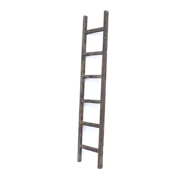 Rustic Farmhouse 6ft Reclaimed Wood Decorative Ladder (Black)