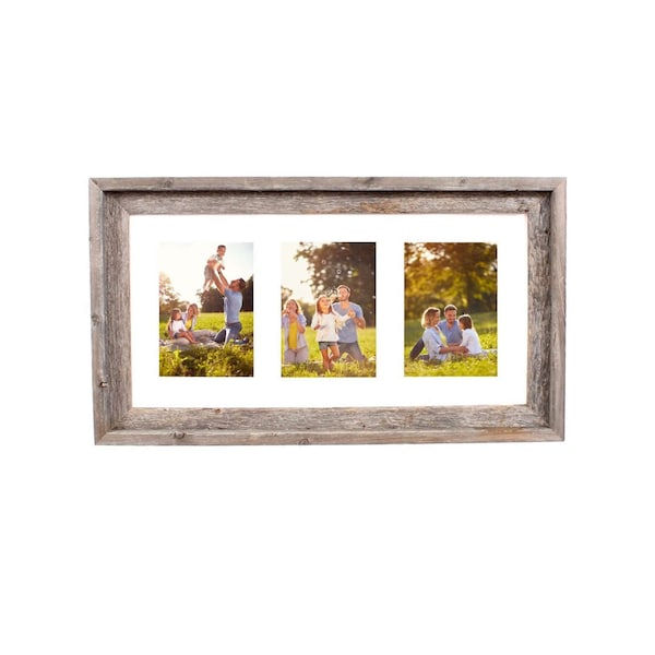 Rustic Farmhouse Reclaimed Frame - Fits 3, 5x7 Photos (White)