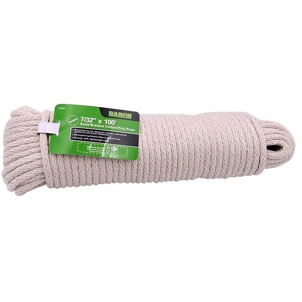 BARON Cord, Sash, Working Load Limit: 11 lb, Construction: Solid Braided, #7, Cotton/Poly, Natural, 7/32 in Dia, 100 ft L