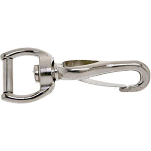 Features Swivel - Strap eye - Die-cast zinc. Nickel plated steel. Snap open in - 3/16. Length - 5/8.