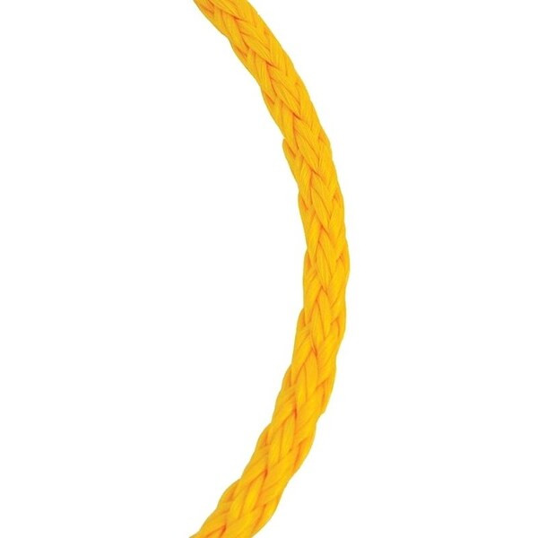 BARON Rope, Working Load Limit: 100 lb, Rope Construction: Hollow Braided, Polypropylene, Yellow, 1/4 in Dia, 50 ft L