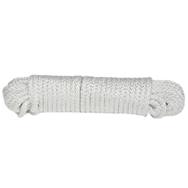 BARON Rope, Working Load Limit: 120 lb, Rope Construction: Braided, #8, Nylon, White, 1/4 in Dia, 50 ft L