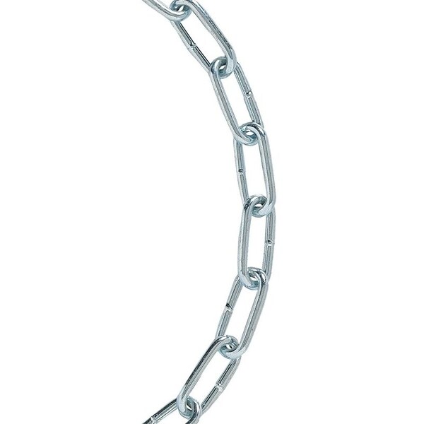 Straight Link Chain, No 2, 125 ft L, 310 lb Working Load, Carbon Steel, Electro Galvanized/Zinc