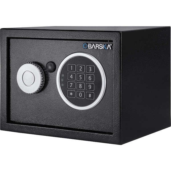 Keep valuables safe and secure with the Color Box series of safes by BARSKA. The compact dimensions of the safe perfect for securing money, jewelry, electronics, and other small valuables while keeping a low profile form factor which can be mounted in closets and other tight spaces. The user-friendly digital keypad retains up to 2 PIN Codes for accessing the safe, and can also be opened with the included back-up keys. Two solid steel locking bolts provide extra security against tampering, and pre-drilled mounting holes two on the back, two on the bottom allow the safe to be secured to a flat surface.