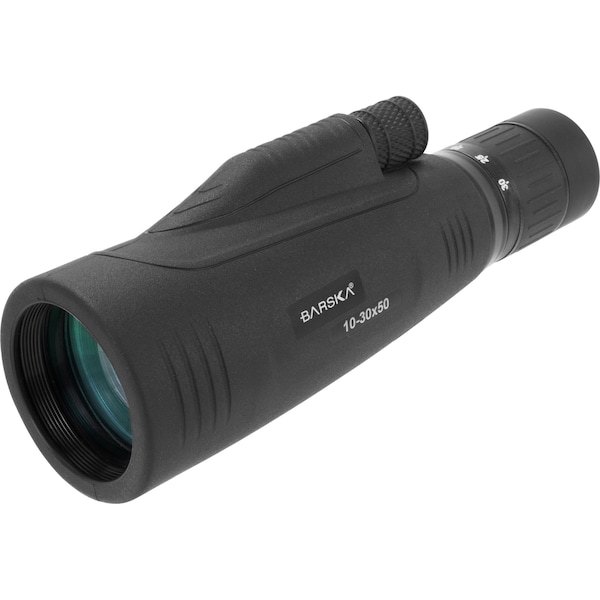 The 10-30x50mm Precision Blackhawk Zoom Monocular combines portability and ergonomic design into a versatile lightweight optical system. This water-resistant monocular features a fully coated optical coating system and BK-7 prism that help the 10-30x50mm Monocular transmit enhanced contrast and clarity. A built-in tripod socket and 15mm eye relief make this optic a convenient alternative to lugging around a spotting scope for close to mid-range observations. A shock-absorbing rubber armoring gives the user a solid grip while the center focus knob allows the user to easily focus the monocular with one hand. Whatever the application, this monocular is well-equipped for quick glassing on the go. The 10-30x50mm Monocular is perfect for bird watching, sporting events, concerts, hunting, and much more. Soft carrying case and hand strap are included.