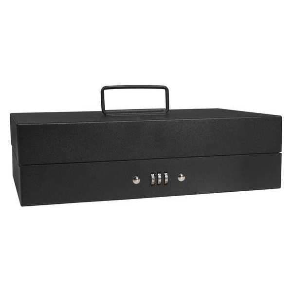 Cash Box, Number of Compartments 3, Material Steel, Lock Style Combination, Color Black, Height 3 in, Width 7 1/4 in, Depth 11 in, Includes Keys, Removable Tray