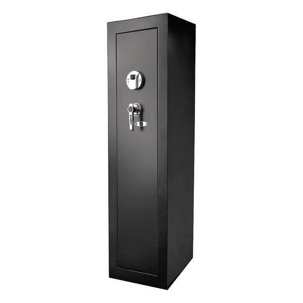 Gun Safe, Color Black, Net Weight 106 lb, Capacity 5.52 cu ft, Fire Rating Not Rated, Water Endurance Not Specified, Material Steel, Finish Matte, Finger Print Memory 120, Lock Style Biometric, Key, 3 Number of Shelves, Number of Bolts 5, Outside Height 57 in, Outside Width 13 3/4 in, Outside Depth 13 in, Inside Height 56 1/2 in, Inside Width 13 1/2 in, Inside Depth 12 1/2 in, Door Opening Height 51 in, Door Opening Width 9 1/2 in, Holds Documents, Records, Valuables and Firearms